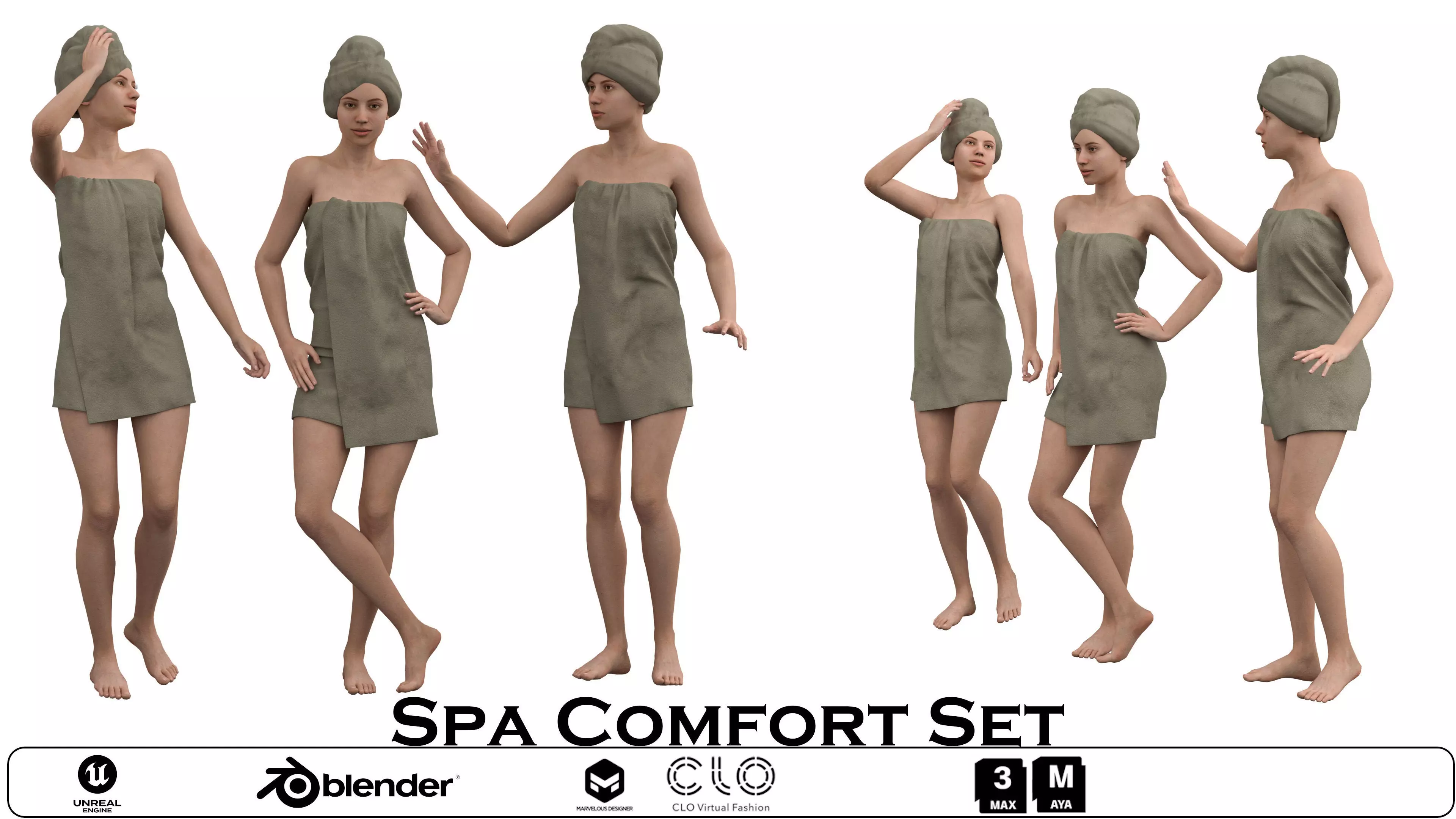 Name: Spa Comfort Set in 3 posesType: modelFormat: 3Ds Max 2013Export: FBX, OBJRender: VRay (5.x), Corona (6)Polys: 116538Verts: 118998Matclasses: Multimaterial,VRayMtl,CoronaMtlUnits: CentimetersDimension: 188.01 x 59.21 x 178.47Date: 2025.12.6
