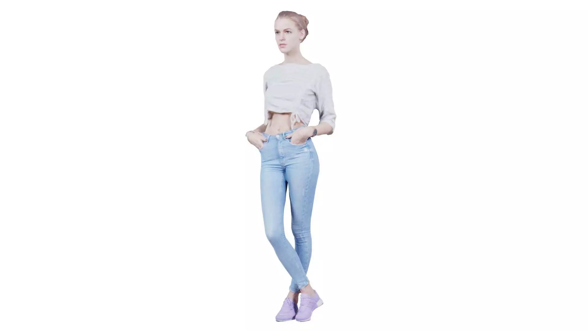 Polygonal Miniatures presents sporty woman in jeans and pink sneakers crossing legs, a model from our 3D scanned catalogue. The model, a woman in jeans and a crop top standing, is obtained by photogrammetry, and scanned using SLR camera's.Processing takes place in Zbrush and Photoshop and the resulting 3D model has unwrapped, non overlapping UV's, and a texture and normal map. Before publishing, we make sure the model has real world scale (meters), correct shader setup and is centered at the origin.Apart from the various file formats, we also offer a Blender file with material and textures set-up, ready for export and rendering. More info can be found below: