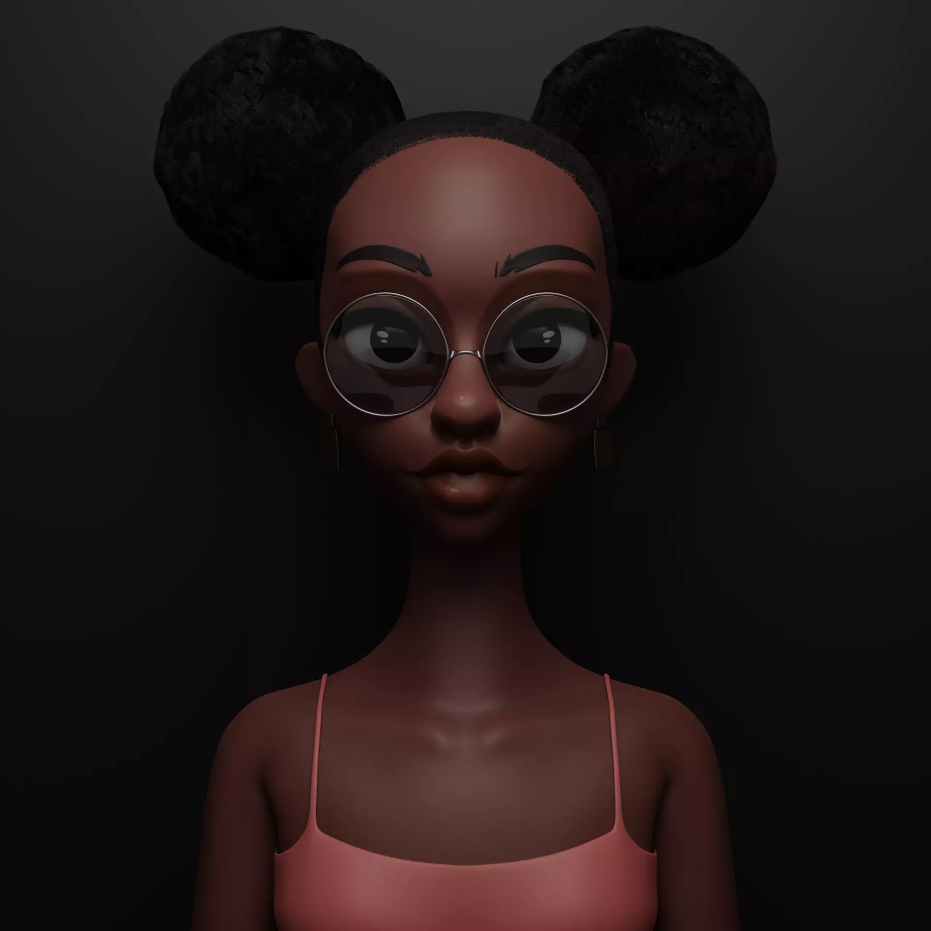The eyebrows, eye lashes and ear rings along with the singlet were modeled normally in Blender.