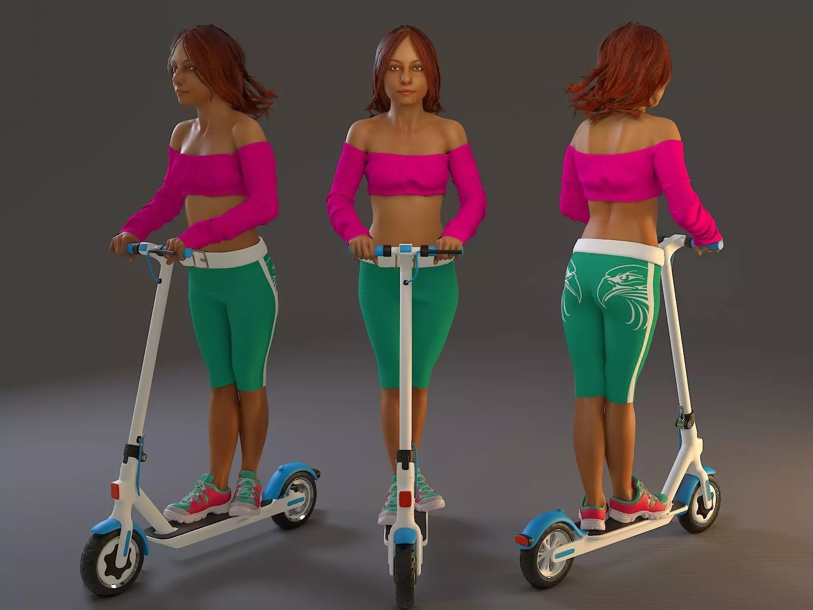 Interior or exterior Model with clothes and objects (scooter, cap, rings, shoes...etc).