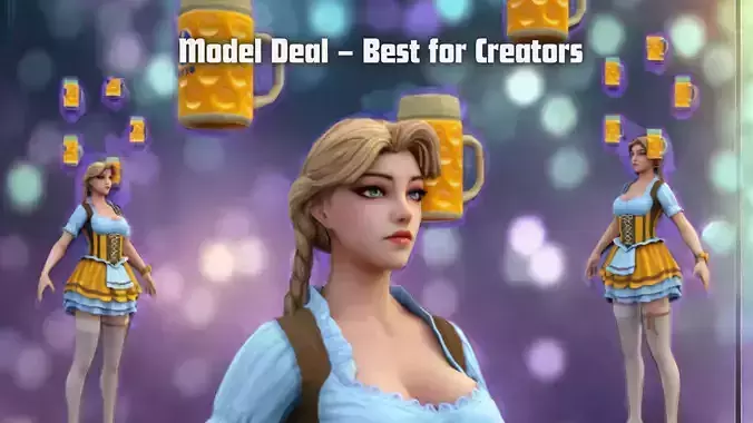 Enhance your project with this high-quality, stylized 3D Female Character inspired by traditional German Oktoberfest themes. Perfect for game developers, animators, and VR/AR creators looking for a unique, 'Dirndl' style character with a modern stylized aesthetic."