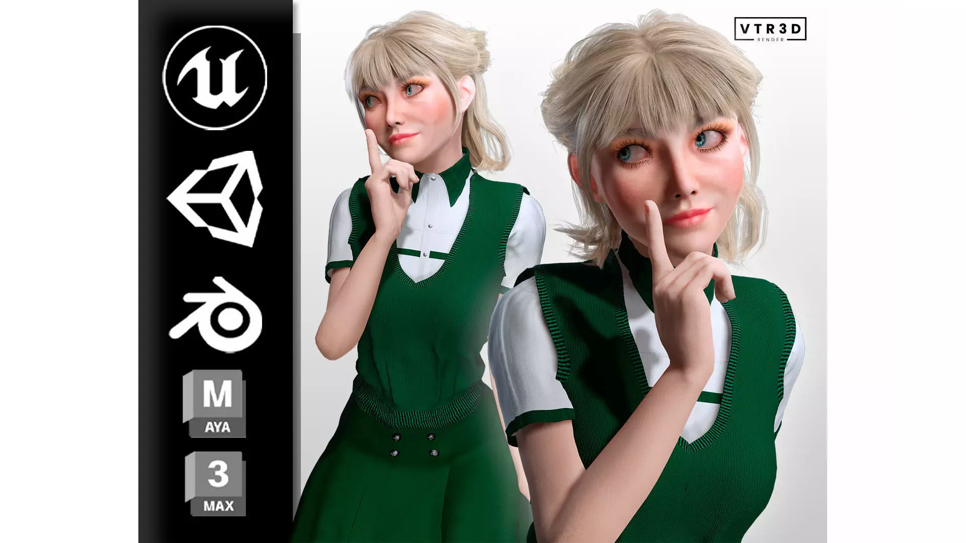 This stylized yet realistic female student character is designed with high visual quality and clean production standards, ideal for modern games and cinematic projects. The model features soft facial proportions, expressive eyes, subtle skin shading, and natural makeup details that enhance personality while maintaining a believable look.