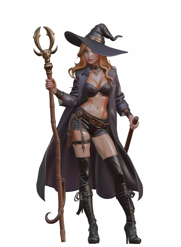 This stunning Stylized Sorceress 3D Model is a powerful addition to any fantasy-themed collection. Featuring a confident female witch dressed in an alluring, high-fantasy outfit with thigh-high boots, a wide-brimmed hat, and a detailed magical staff, this model is ideal for games, renders, 3D printing, and more.