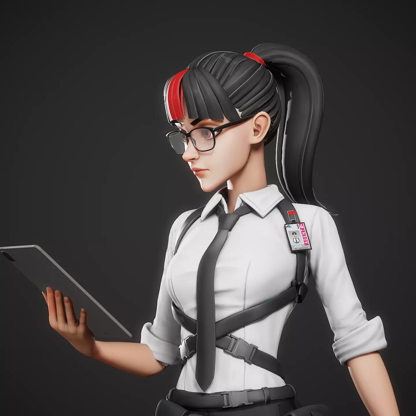 High quality 3d model of a stylized strictly dressed girl.