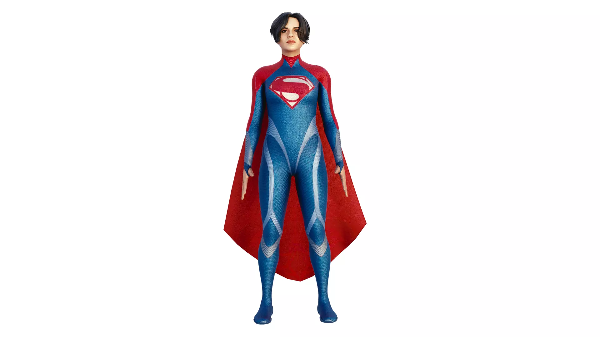 Description: super girl 3D model is a hight quality, photo real model that will enhance detail and realism to any of your game projects or commercials. The model has a fully texture"d, detailed design that allows for close-up renders. The model has all the Facial blender shapes whiche makes easy while animating character expressions. Features: *hight quality polygonal model with detailed texture, correctly scaled for an accurate representation of the original objects. *blender cycle and standard materials scenes along with multiple other file formates. * texture files are given in .jpg formats for easy access. * all preview images are rendered using blender cycles. *no cleaning up necessary, just drop your models into the scene, load the texture and start rendering. *no special plugin needed to open scene. *photoshop files for texture is given in textures folder for users to edit the wrapper texture.