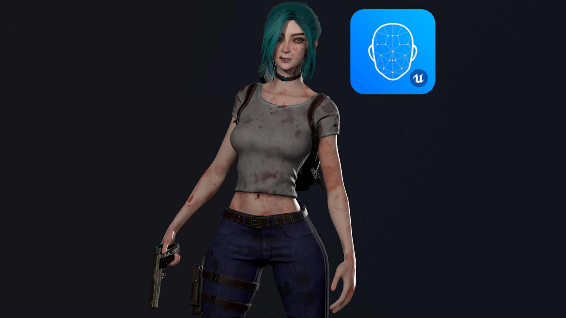 Rigged with Epic Skeleton. Additional bones that are added to Epic Skeleton: Breast_l, Breast_R but they are not connected! Easy Animations retarget in Unreal Engine. Facial expressions are included (Morph Targets, Blendshapes). You can use this model for face mocap (live stream) and conversation animations. PBR Textures Metall/Roughness 4K Textures - normal, metallic, roughness, albedo. 12 sets of textures - Body, Head, Cloth, Teeth, Hair, Eyes, Eyelashes, Pistol, Shotgun, Boots, Kabura, Backpack. 2 types of weapons. Shotgun and pistol. 3 types of clothing dyeing, 2 civil and 1 military. All of them have options, clean clothes, dirt and blood. You can adjust them with the sliders in the material settings. You can also change the color of the eyes and hair. The body and head also have a clean surface, as well as blood and dirt. You can also change skin color.The model is completely modular, you can remove or add any detail you want.The body model is censored according to the rules of the store.