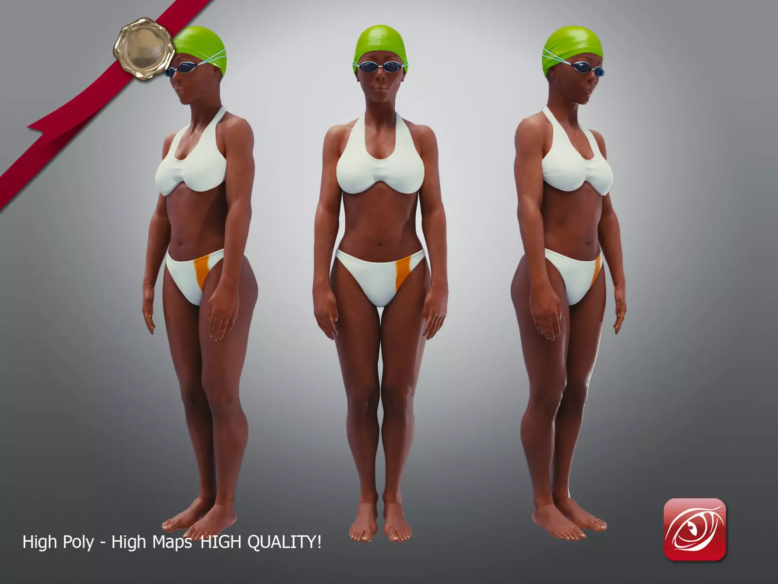 Casual Swimmingpool girl with swimsuit, glasses and cap.Render SSS on GPU withBlender 2.78 or Later version.