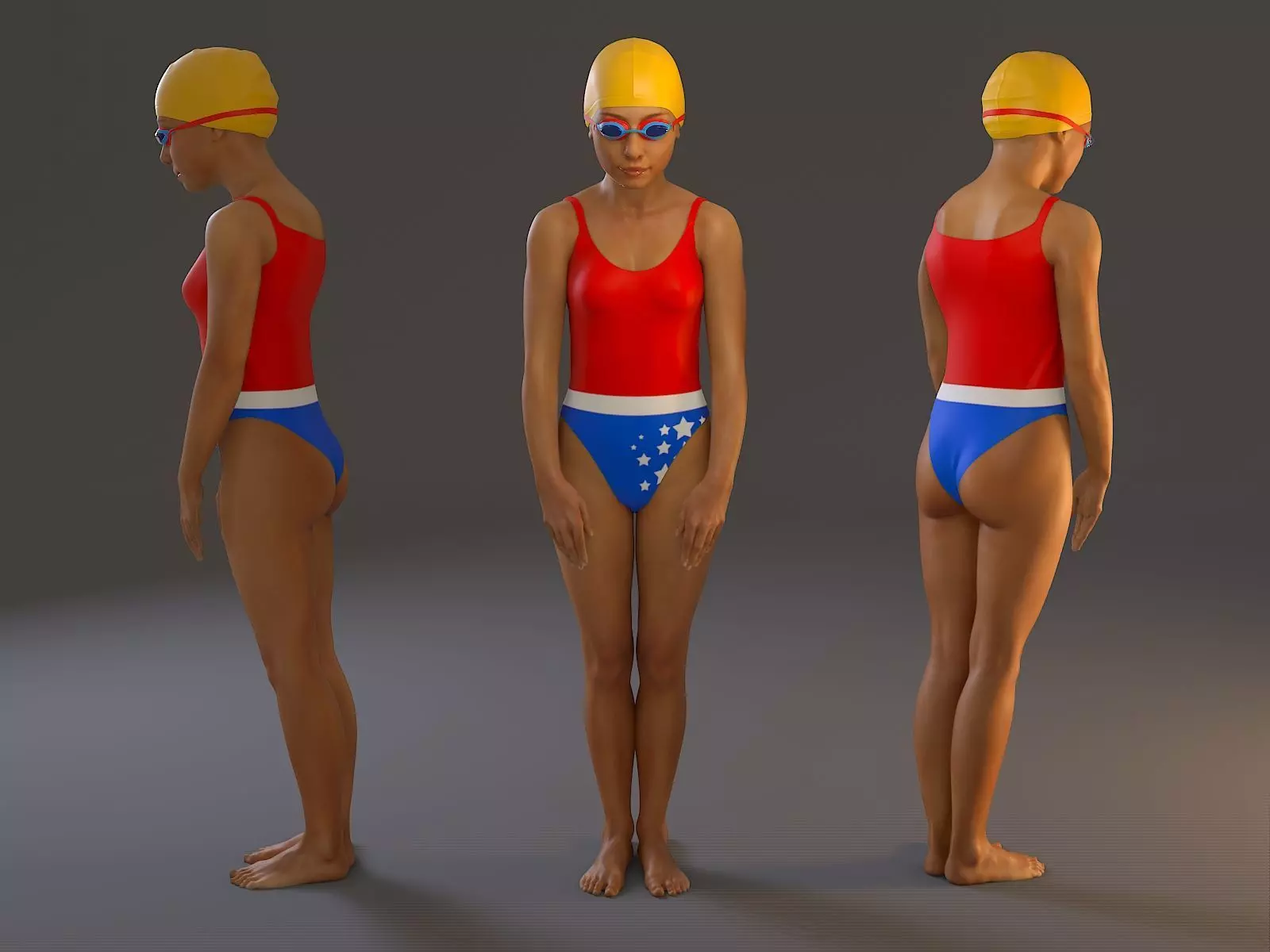 Model of a girl with glasses for swimmingpool scenes.