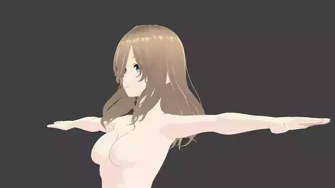 T-pose rigged model of Violet Evergarden -like, anime girl from Violet Evergarden. Body, hair and tits are rigged. Quad mesh for better quality. Textures can be easily modified in 2D editing software, as they are stored in the Textures folder. Nude model to use as a 3D puppet in projects, ideal for 3D poses. T pose rigged girl.