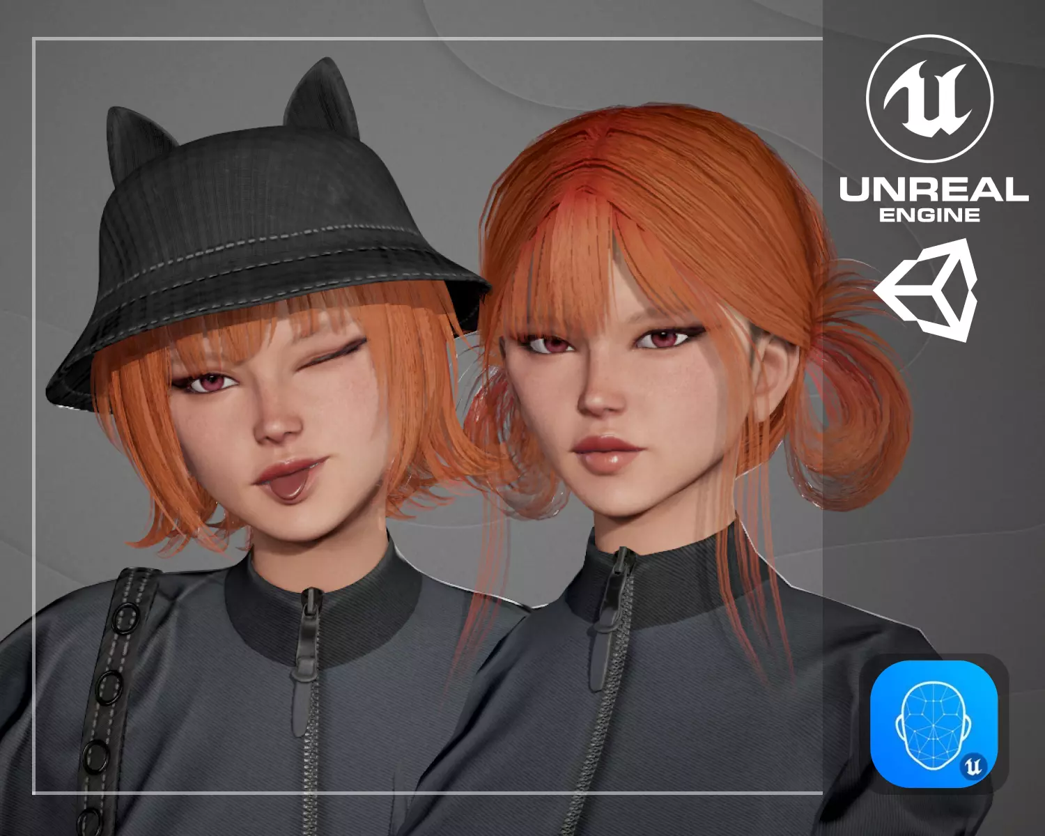 Female Modular Character for Games and VT. Rigged to Epic Skeleton(UE4). Live-Link Ready with 52 ARkit Blendshapes.