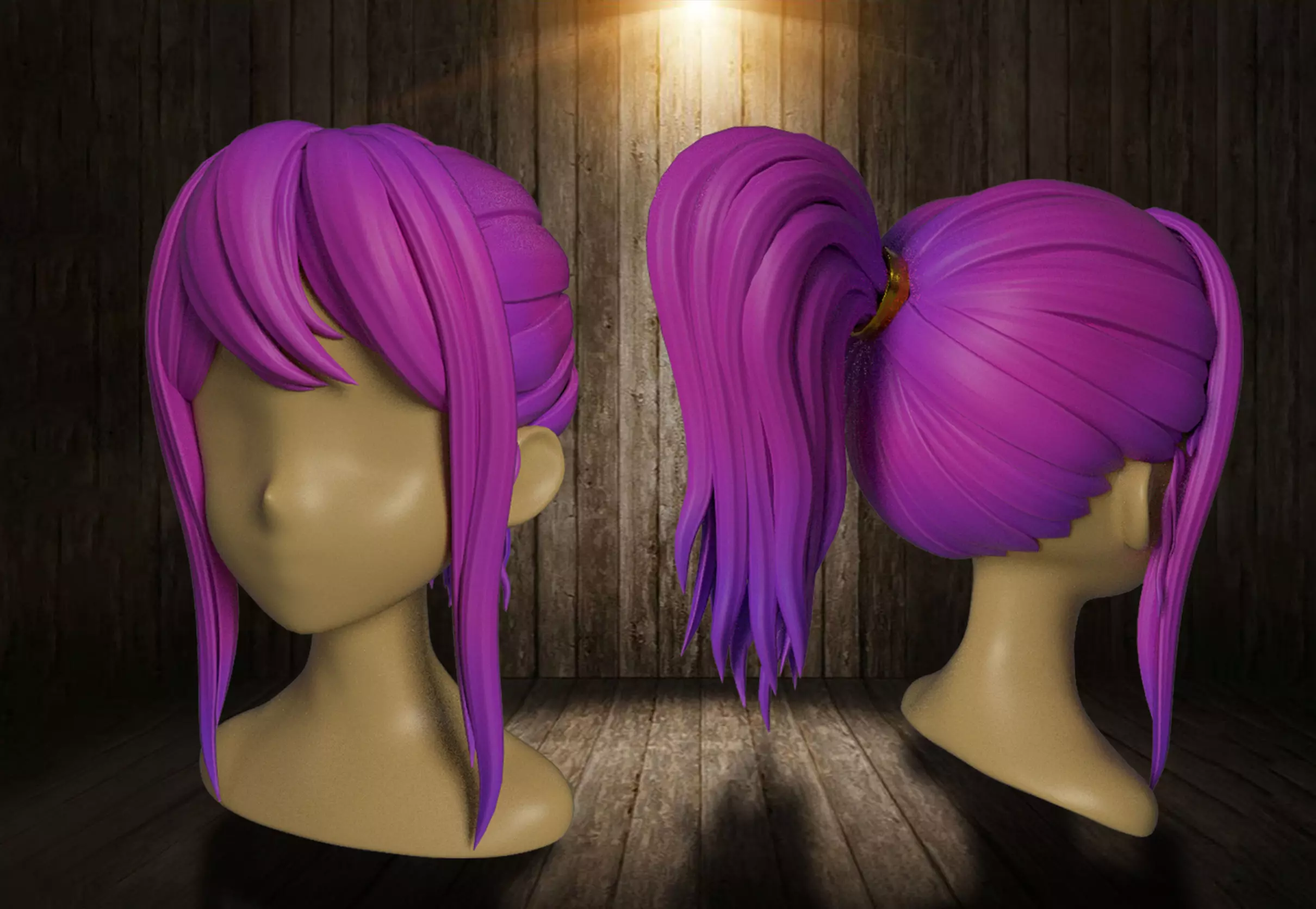 Long hair Low-poly 3D model