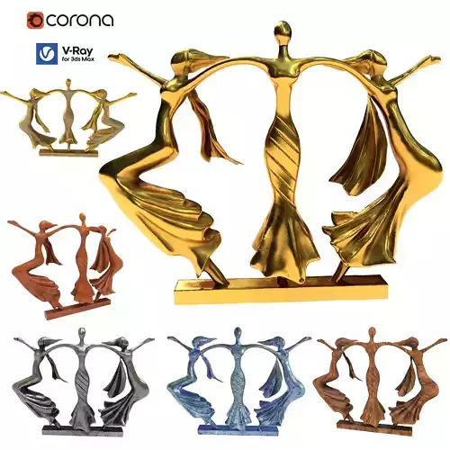 Three person dance sculpture Low-poly 3D model