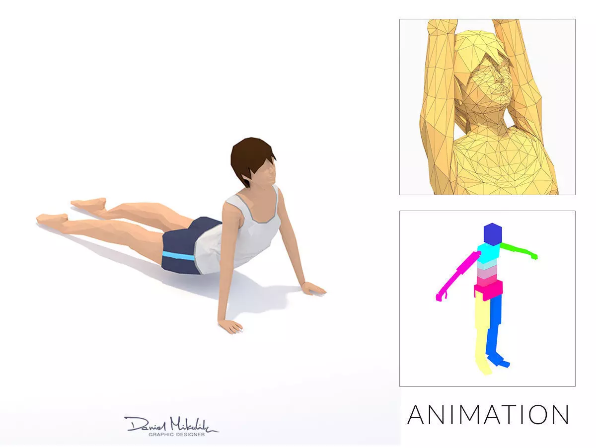 UpWard Facing Dog Yoga Exercise Woman Animation Low-poly 3D model