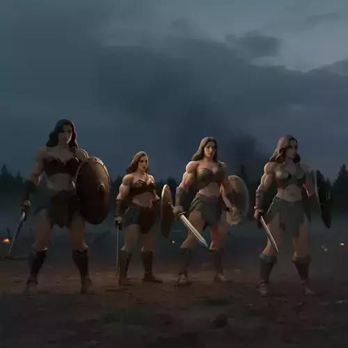 Valkyra Ironbound is a premium 3D character pack featuring four powerful Amazon-style female warriors, forged in strength and discipline. Each warrior showcases a unique stance, armor variation, and commanding presence, blending heroic femininity with raw battlefield power.With muscular anatomy, detailed armor pieces, round shields, and short swords, this pack is ideal for ancient, fantasy, mythological, or dark cinematic worlds. Perfect for games, high-end renders, animations, and storytelling scenes where dominance, honor, and warrior spirit are essential.