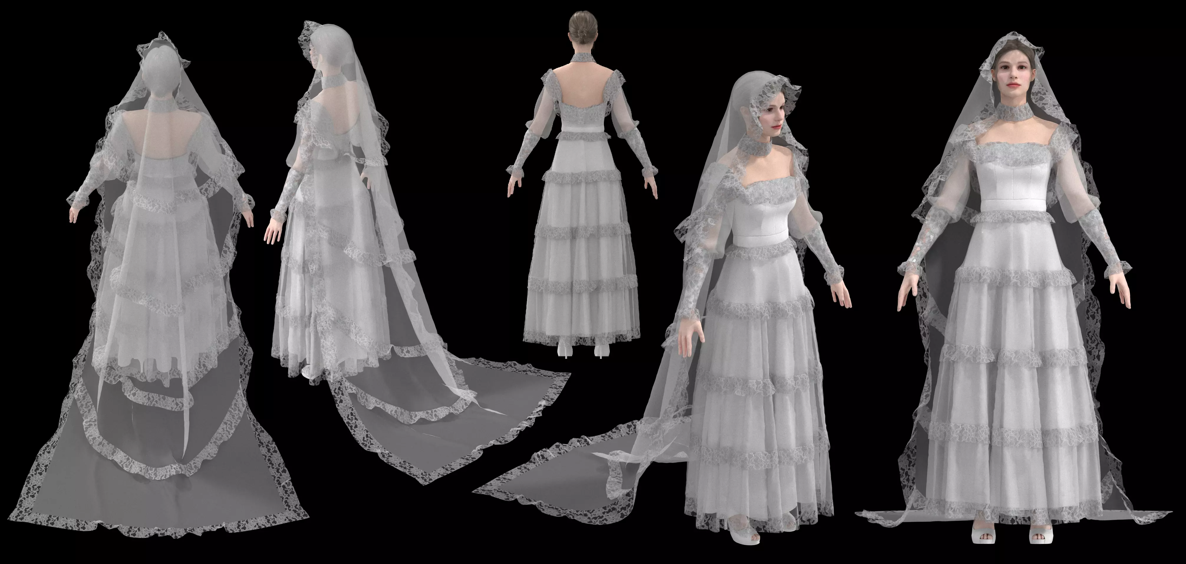 Victorian White Dress Bridal No 3 - A pose 3D model