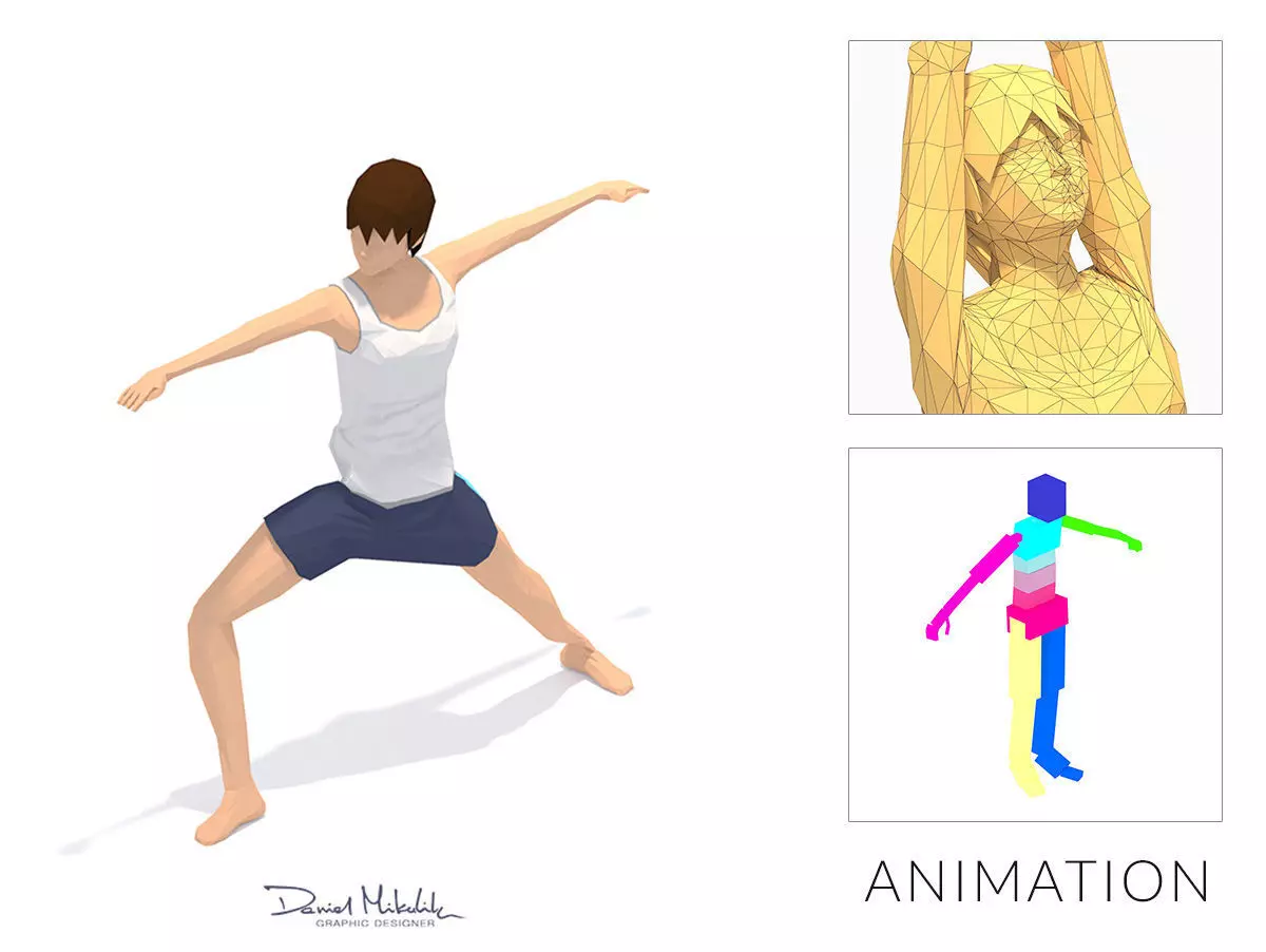 Animations of exercise Yoga woman Low poly 3d model in flat surface style.Animation created in CAT system and exported to FBX files for loop sequence.