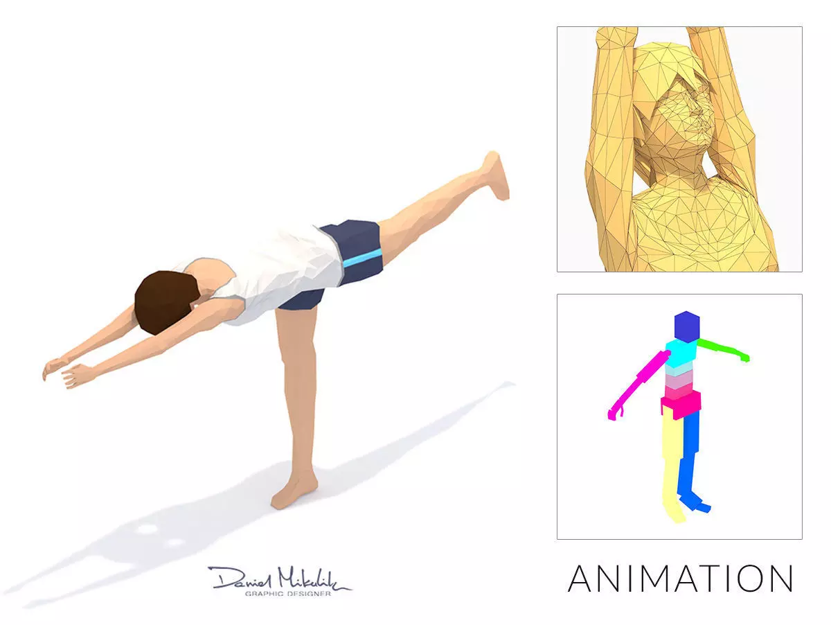 Animations of exercise Yoga woman Low poly 3d model in flat surface style.Animation created in CAT system and exported to FBX files for loop sequence.