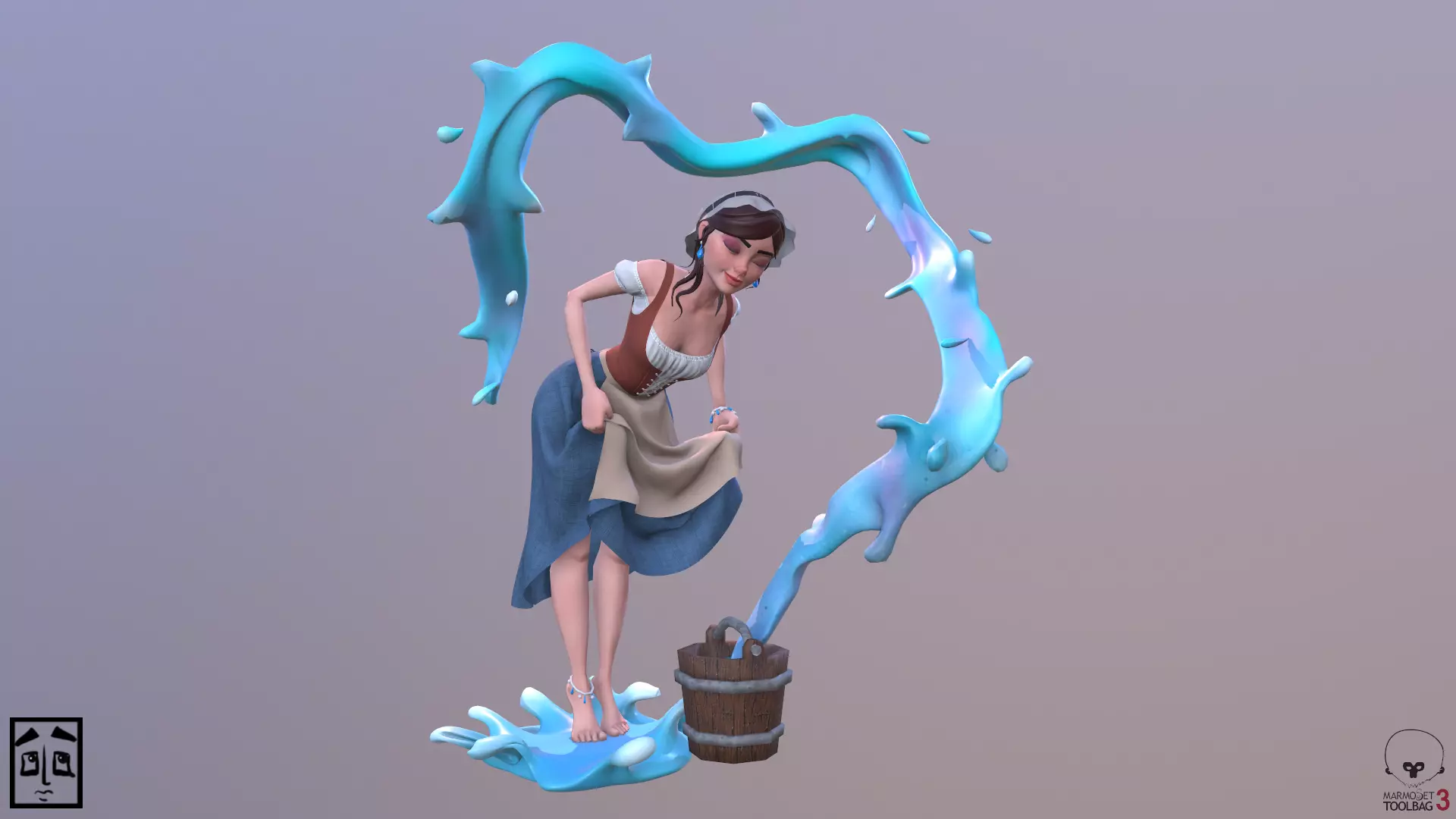 WaterGirl woman pouring water into bucket 3D model
