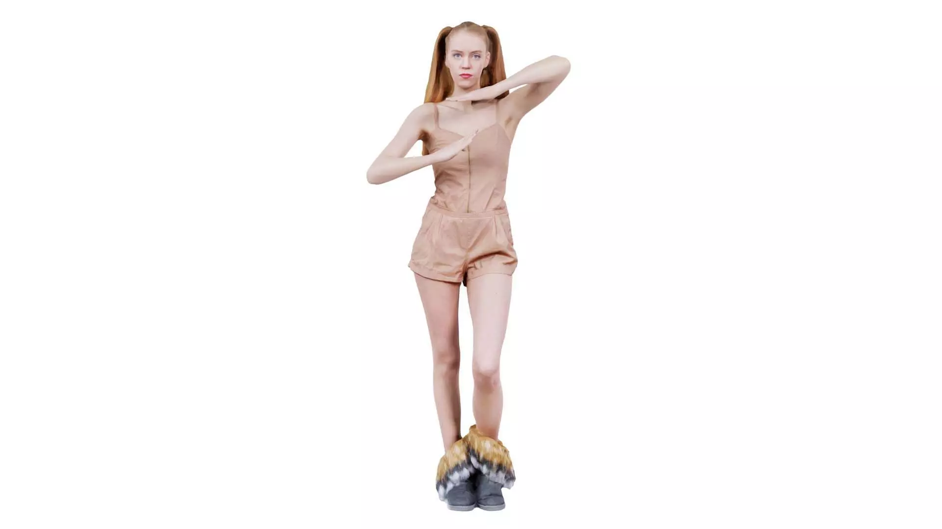 Woman in Beige Jumpsuit and Double Ponytails Posing Manga Low-poly 3D model