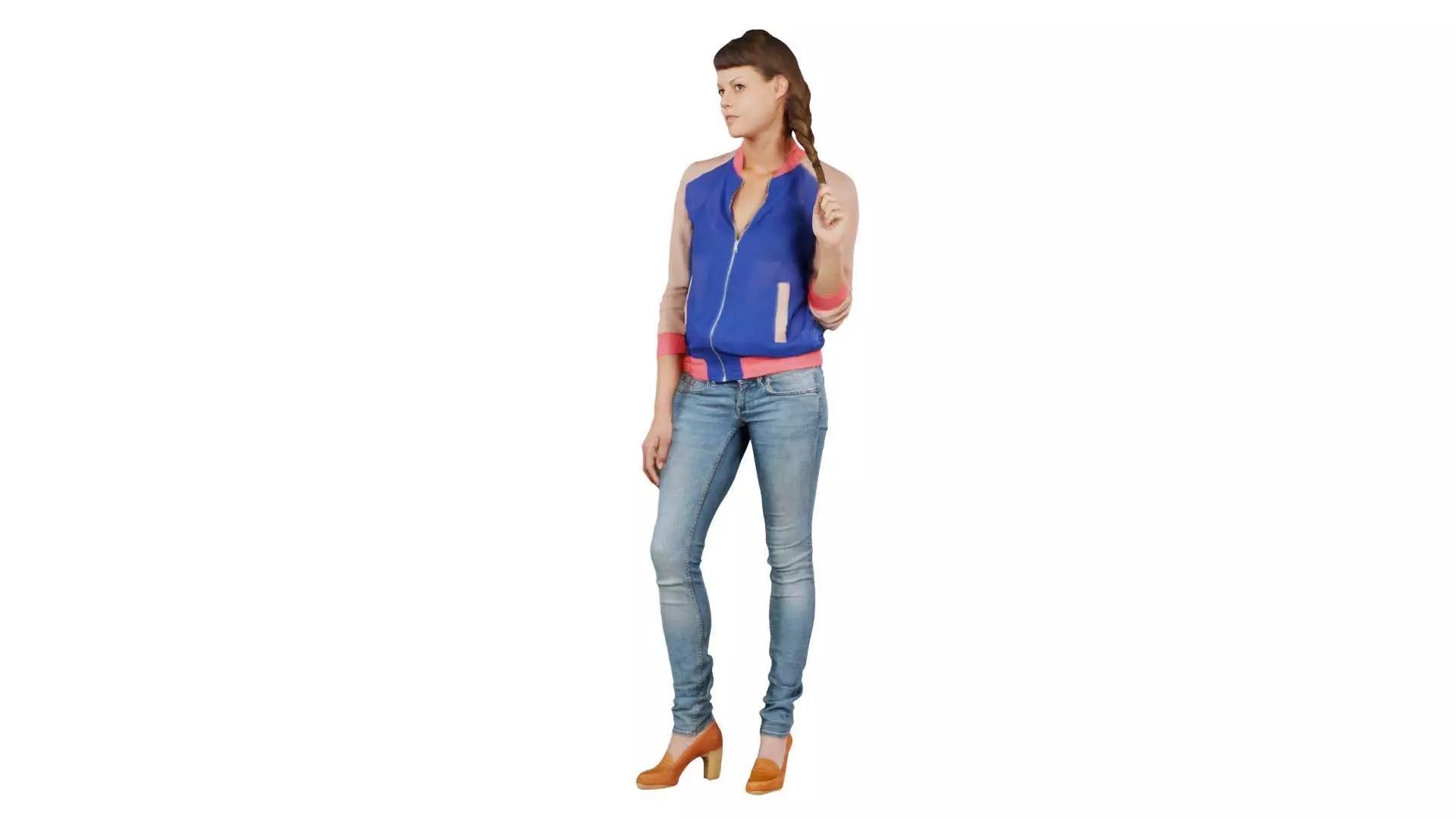 Polygonal Miniatures presents woman in blue vest and jeans, a model from our 3D scanned catalogue. The model, a woman in jeans and a blue jacket, is obtained by photogrammetry, and scanned using SLR camera's.Processing takes place in Zbrush and Photoshop and the resulting 3D model has unwrapped, non overlapping UV's, and a texture and normal map. Before publishing, we make sure the model has real world scale (meters), correct shader setup and is centered at the origin.Apart from the various file formats, we also offer a Blender file with material and textures set-up, ready for export and rendering. More info can be found below: