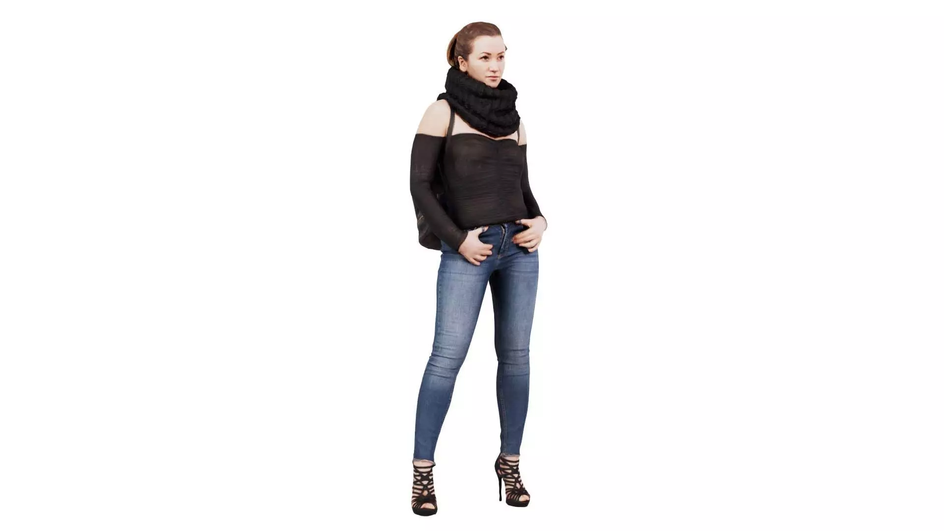 Polygonal Miniatures presents woman in jeans black top and scarf 1, a model from our 3D scanned catalogue. The model, a woman in jeans and a black top, is obtained by photogrammetry, and scanned using SLR camera's.Processing takes place in Zbrush and Photoshop and the resulting 3D model has unwrapped, non overlapping UV's, and a texture and normal map. Before publishing, we make sure the model has real world scale (meters), correct shader setup and is centered at the origin.Apart from the various file formats, we also offer a Blender file with material and textures set-up, ready for export and rendering. More info can be found below: