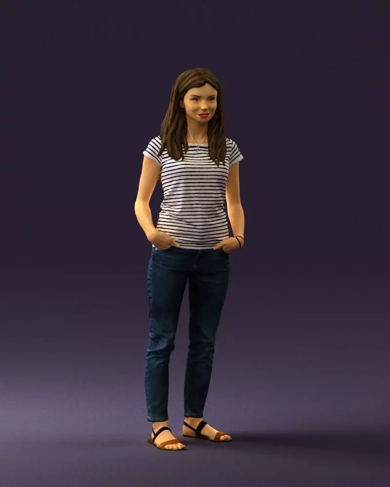 Woman in stripped shirt jeans 0605 3D model
