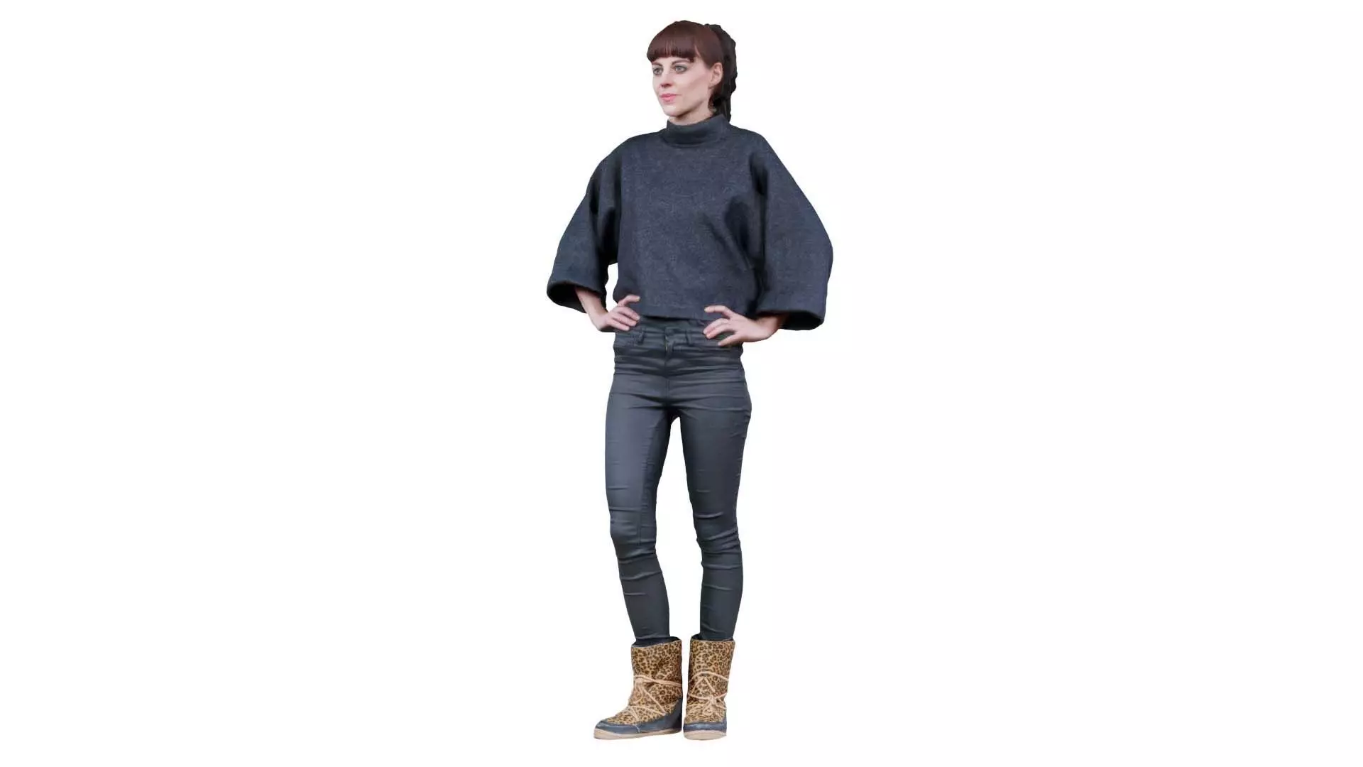 Polygonal Miniatures presents woman in tigerboots, a model from our 3D scanned catalogue. The model, a woman in a black sweater and jeans, is obtained by photogrammetry, and scanned using SLR camera's.Processing takes place in Zbrush and Photoshop and the resulting 3D model has unwrapped, non overlapping UV's, and a texture and normal map. Before publishing, we make sure the model has real world scale (meters), correct shader setup and is centered at the origin.Apart from the various file formats, we also offer a Blender file with material and textures set-up, ready for export and rendering. More info can be found below: