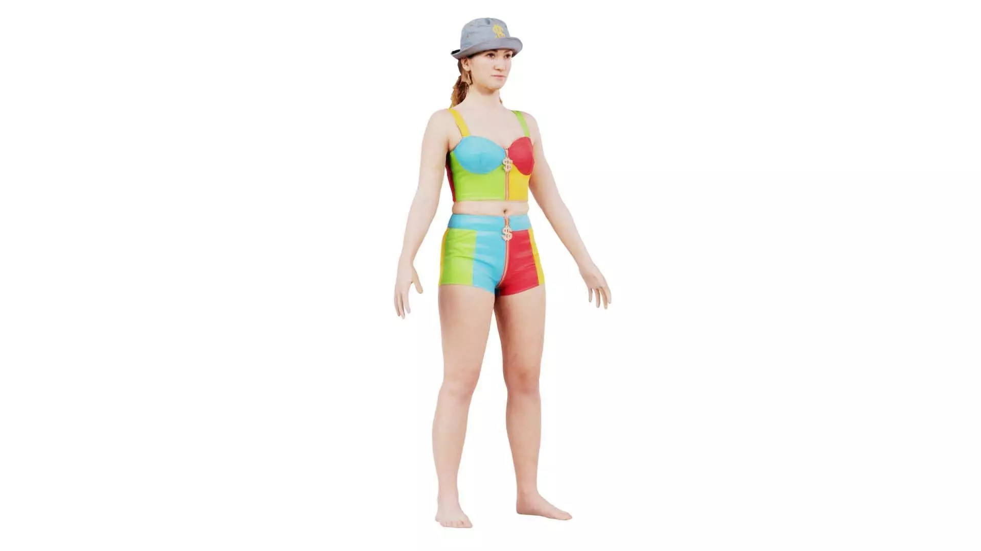 Polygonal Miniatures presents woman wearing colourful leather outfit, a model from our 3D scanned catalogue. The model, a woman in a colorful swimsuit and hat, is obtained by photogrammetry, and scanned using SLR camera's.Processing takes place in Zbrush and Photoshop and the resulting 3D model has unwrapped, non overlapping UV's, and a texture and normal map. Before publishing, we make sure the model has real world scale (meters), correct shader setup and is centered at the origin.Apart from the various file formats, we also offer a Blender file with material and textures set-up, ready for export and rendering. More info can be found below: