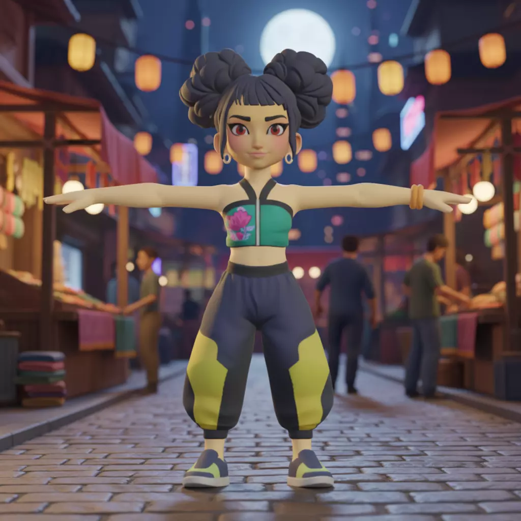 Zoey - Kpop Demon Hunter is retopologized and fully ready for use in game engines.A member of the Kpop Demon Hunters squad, Zoey features a sporty look with a floral crop top and a signature double-bun hairstyle. The model has material with textures. Hope it will be useful for you!