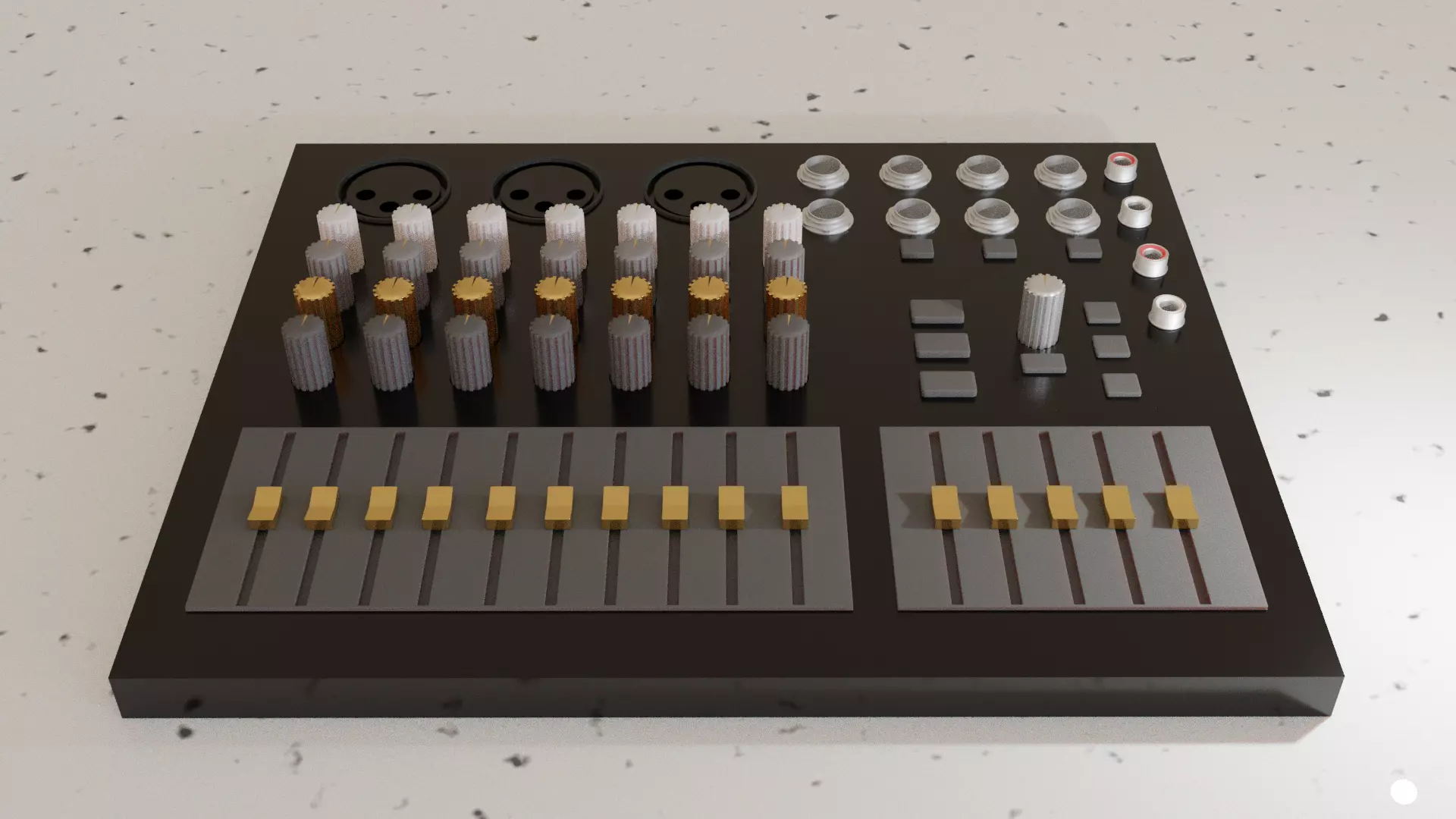 The model has material settings that define how surfaces look (color, shine, transparency, etc.).