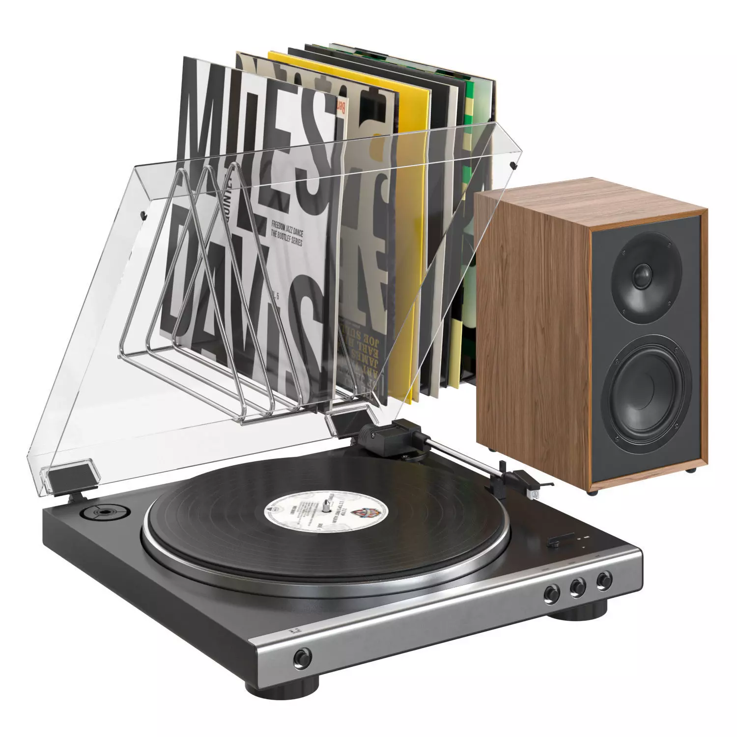 Audio-Technica AT-LP60X turntable with speakers and records 3D model