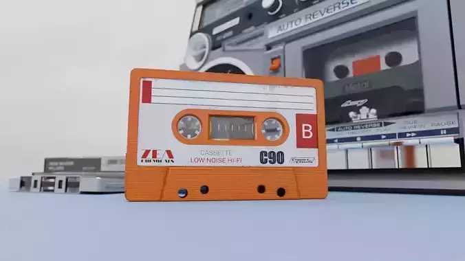 Perfectly modeled and textured cassette from the '80's. The cassette model comes in 8 ready-to- customize colors (4 clear and 4 opaque. Initially I'd included the cassette labels and inserts of the bands that you can see in the images and the video, but then I excluded them in order to avoid any copyright claims).