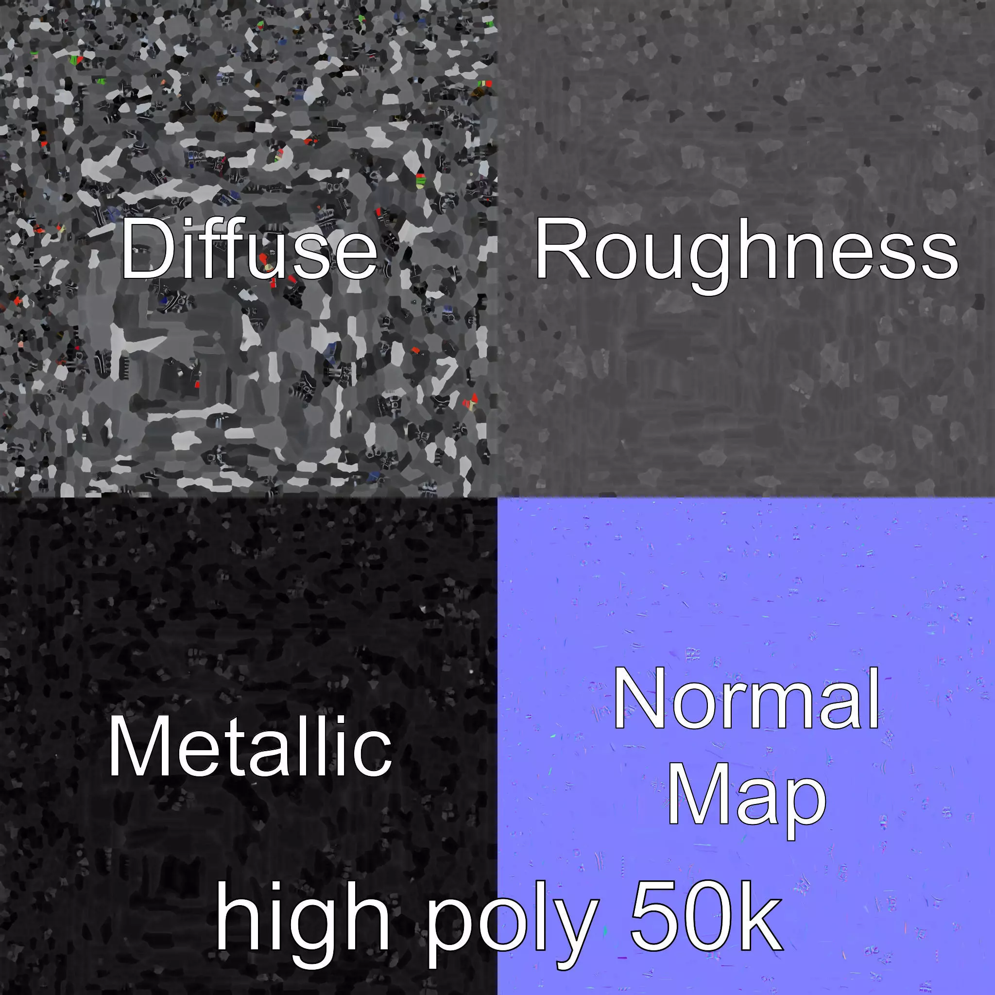 The model's textures are PBR, Diffuse, NormalMap, and reflection/roughness/metallic, which are suitable for any modern rendering engine. All models are accurately unwrapped with no overlapping UVs. All textures are 4096*4096 in size.