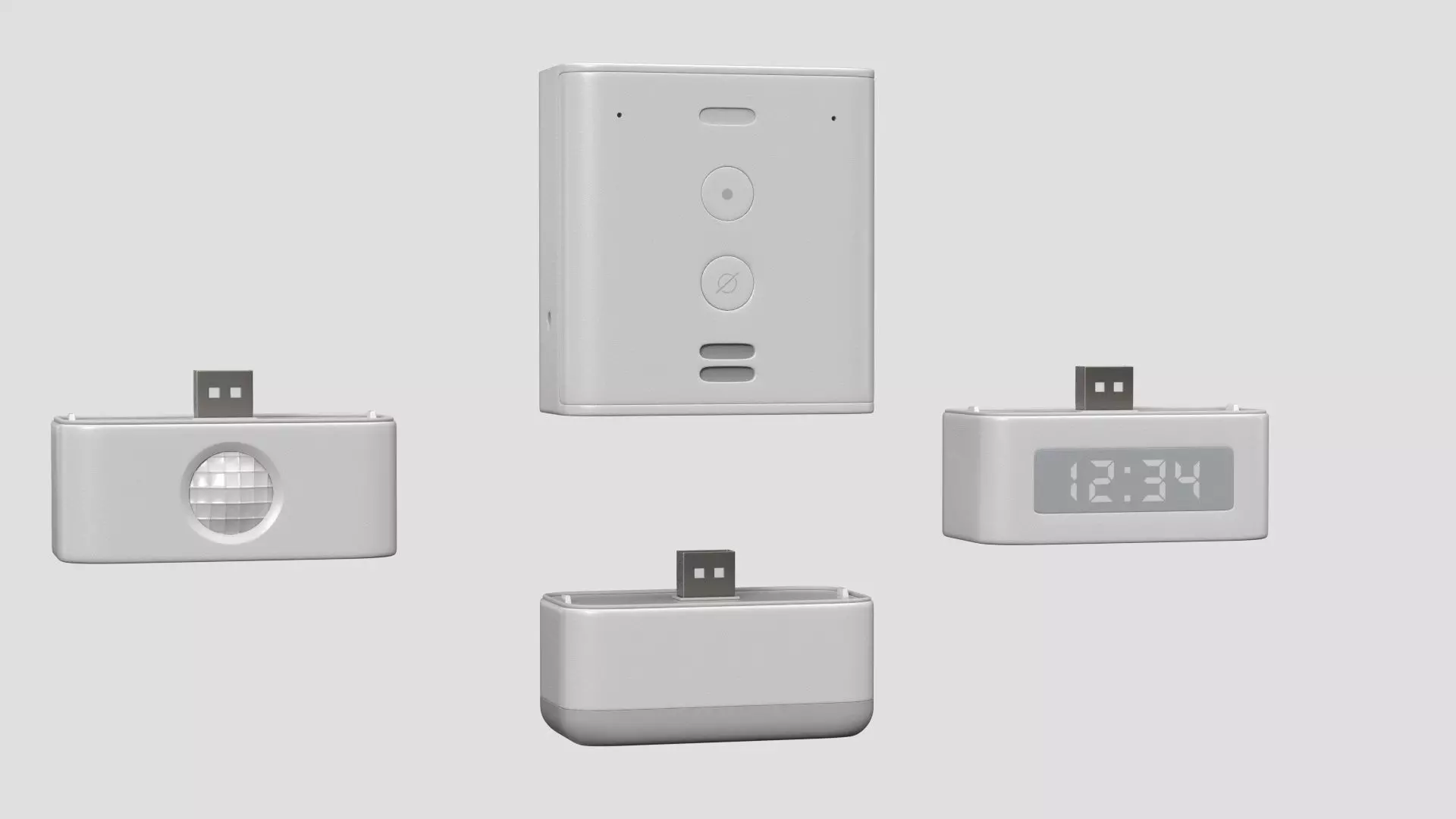 3D model of Echo Flex and accessories(smart bulb, smart clock and motion sensor ) ,with good topology and already textured.