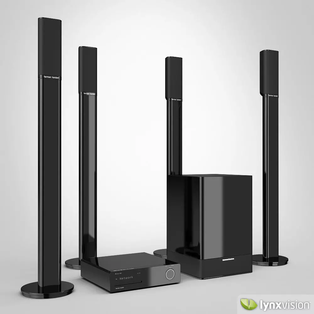 High quality 3d model of a Harman/Kardon 5.1 Home Theater system.