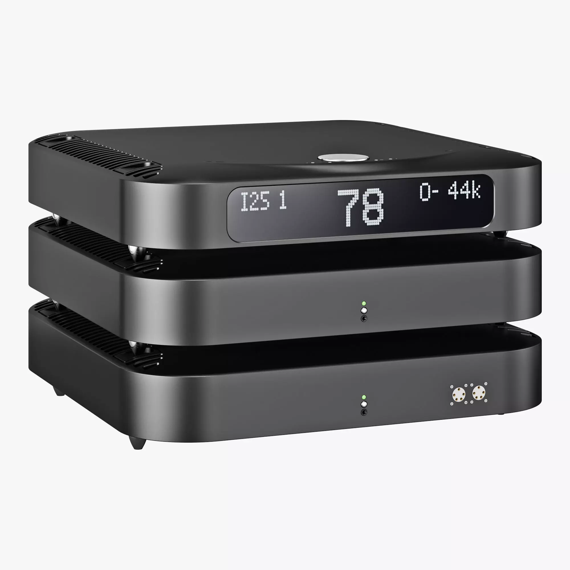 Realistic model high-end pre-amplifier power amp and dacmodeled to real-world scale (mm)