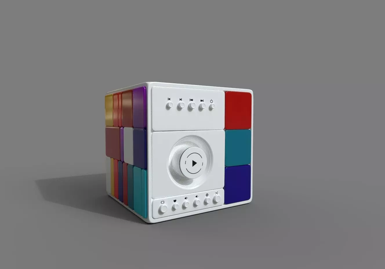 A contemporary music centre in matte white, with interchangeable panels in different colors, allowing for customization to suit your home decor style in the present day.