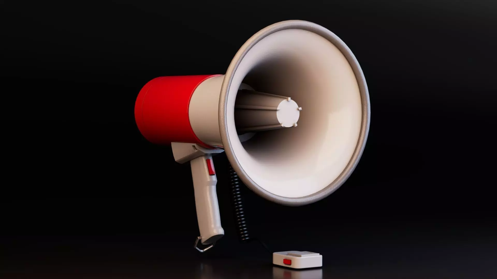 The megaphone features a modern ergonomic design, complete with a carry handle, trigger switch, speaker cone, and mouthpiece, modeled to real-world scale. The mesh topology is clean and optimized for both real-time rendering and high-quality offline rendering.