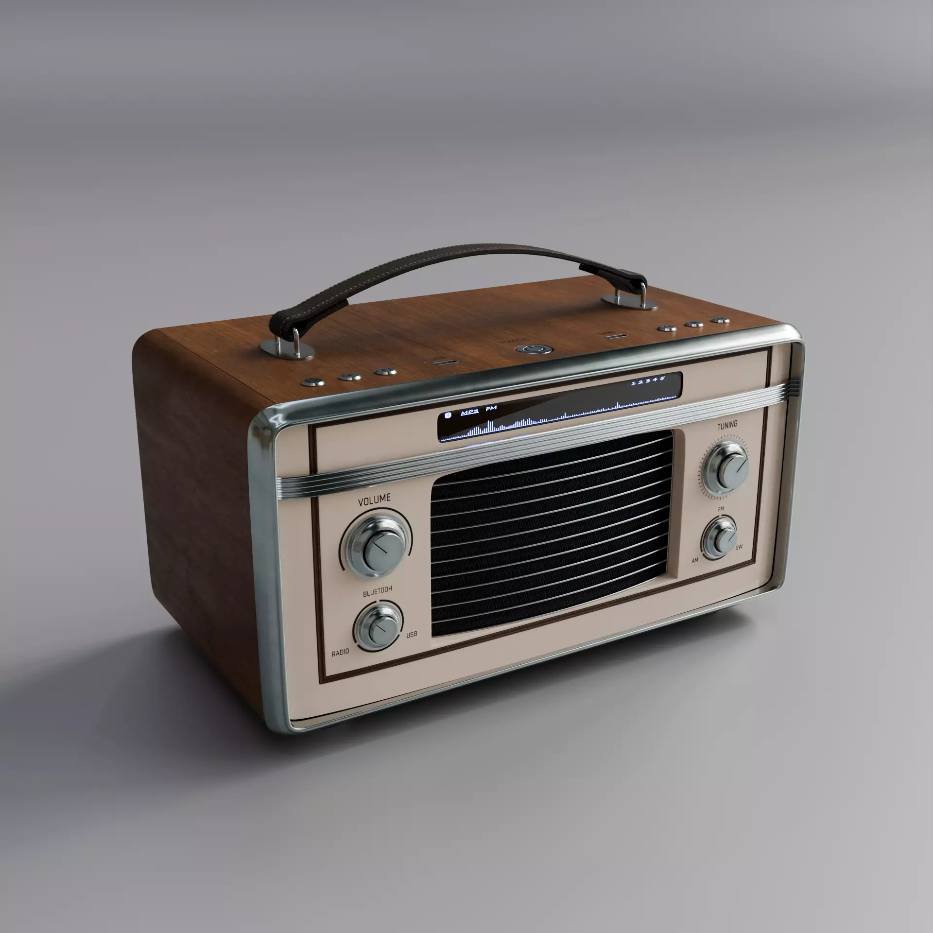 Portable retro radio. Model created in blender program. Textured in Substance painter program. Render done in Cycles engine. I was inspired to create a modern radio with the look of an old one. The package includes 4k and 8k textures. If you like my model please rate it. If you want different texture size, please send me a message