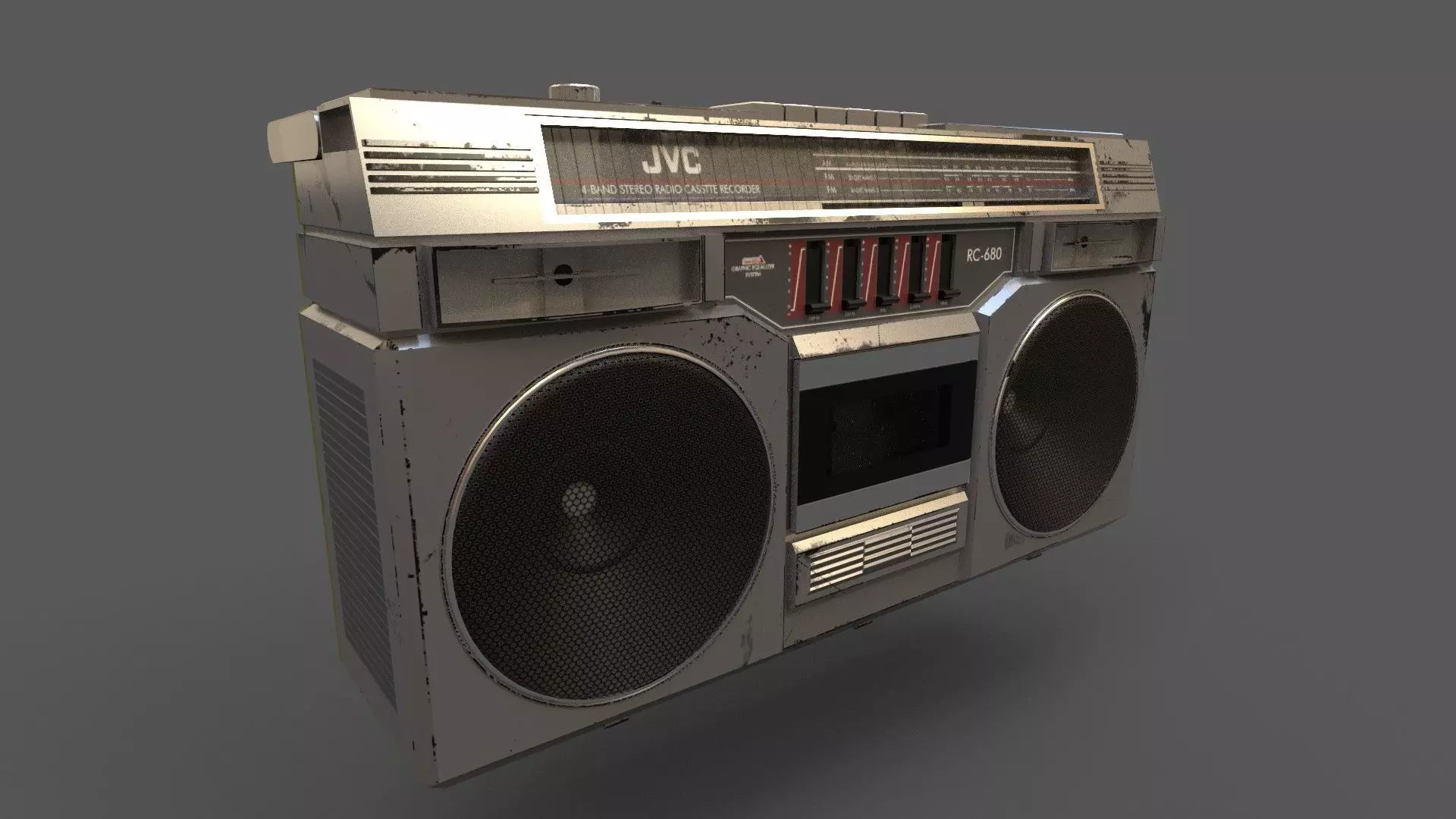 Retro Stereo - JVC RC-680, Full texture 2K, PBR, Easy adapt to any engine you need, Low Poly, is a great asset for your game or your vintage design. Include 2 texture sets, clean and grated.