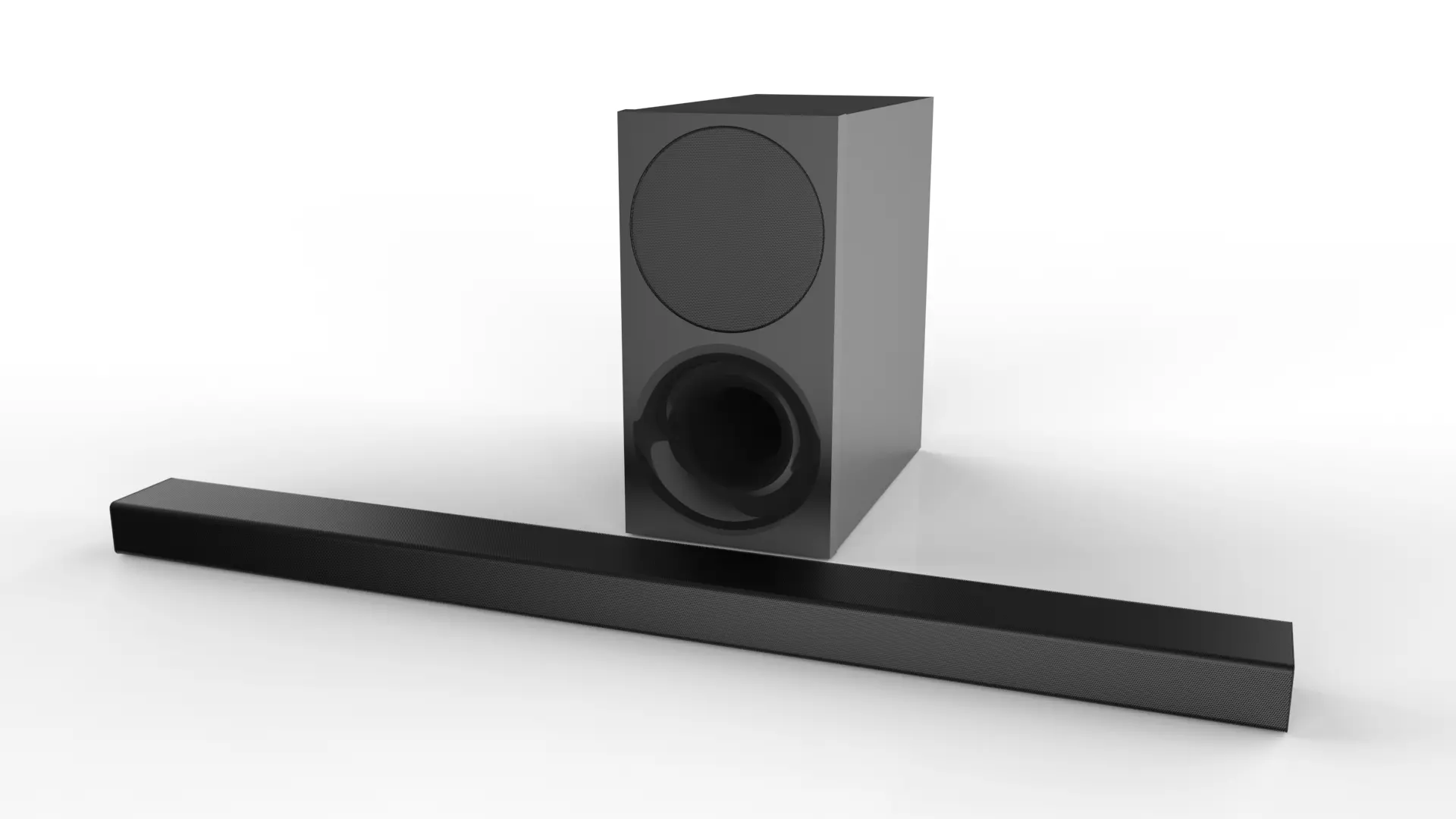 A soundbar + subwoofer that is based on soundbar from Samsung. The model can easily be imported into your 3D scenes.