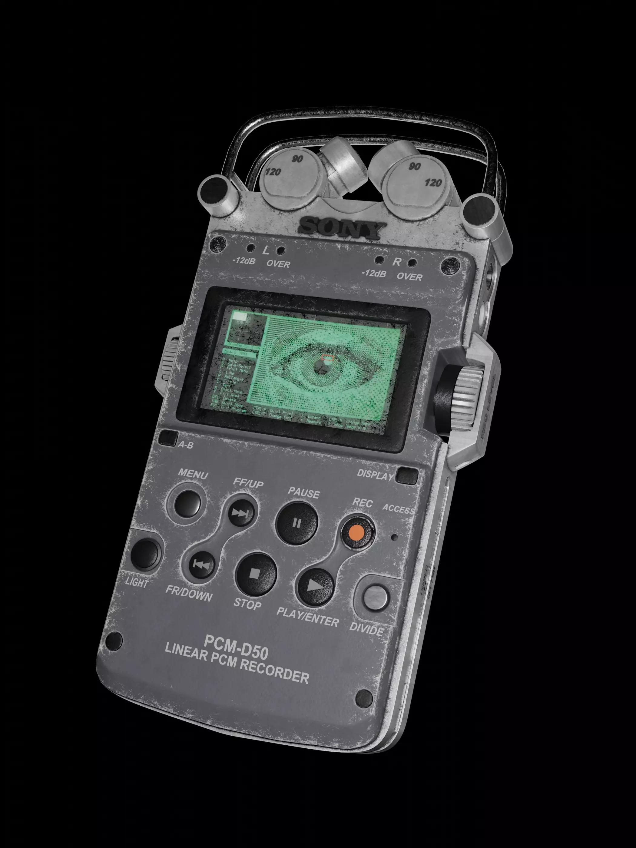 SONY PCM-D50 recording device 3d highpoly model. Quad mesh, so it can be easily unsubdivided, Image on the screen can be changed. Everything done in Blender, I recommend using this software to set up the textures properly.If anything doesn't work well, text me, I'm sure we'll be able to work this out :)Enjoy.