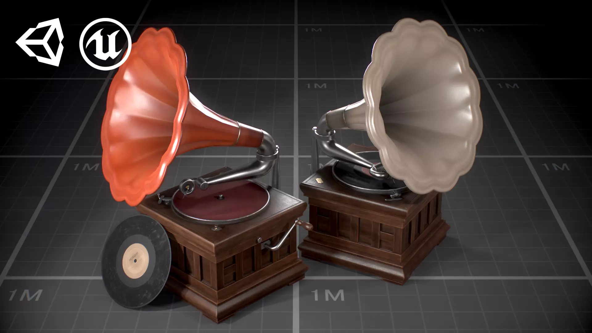 • 2 color variations of soviet gramophone and vinyl records, poly-count - 4772 and 200 triangles .