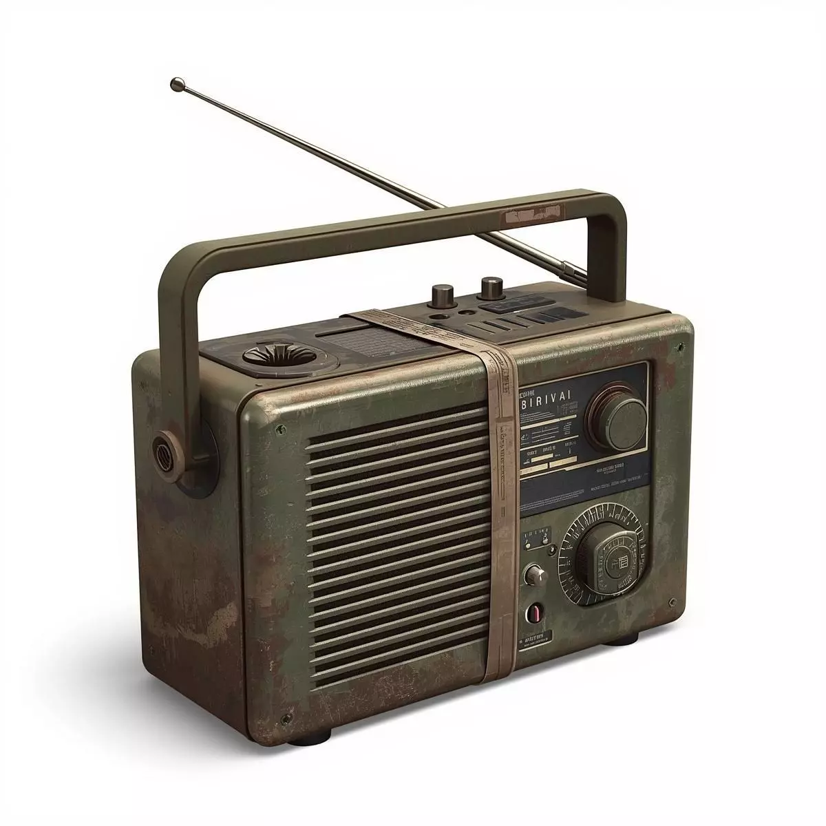 This high-quality 3D asset features a Stylized Survival Radio, a masterfully crafted communication prop designed for post-apocalyptic or military-themed environments.