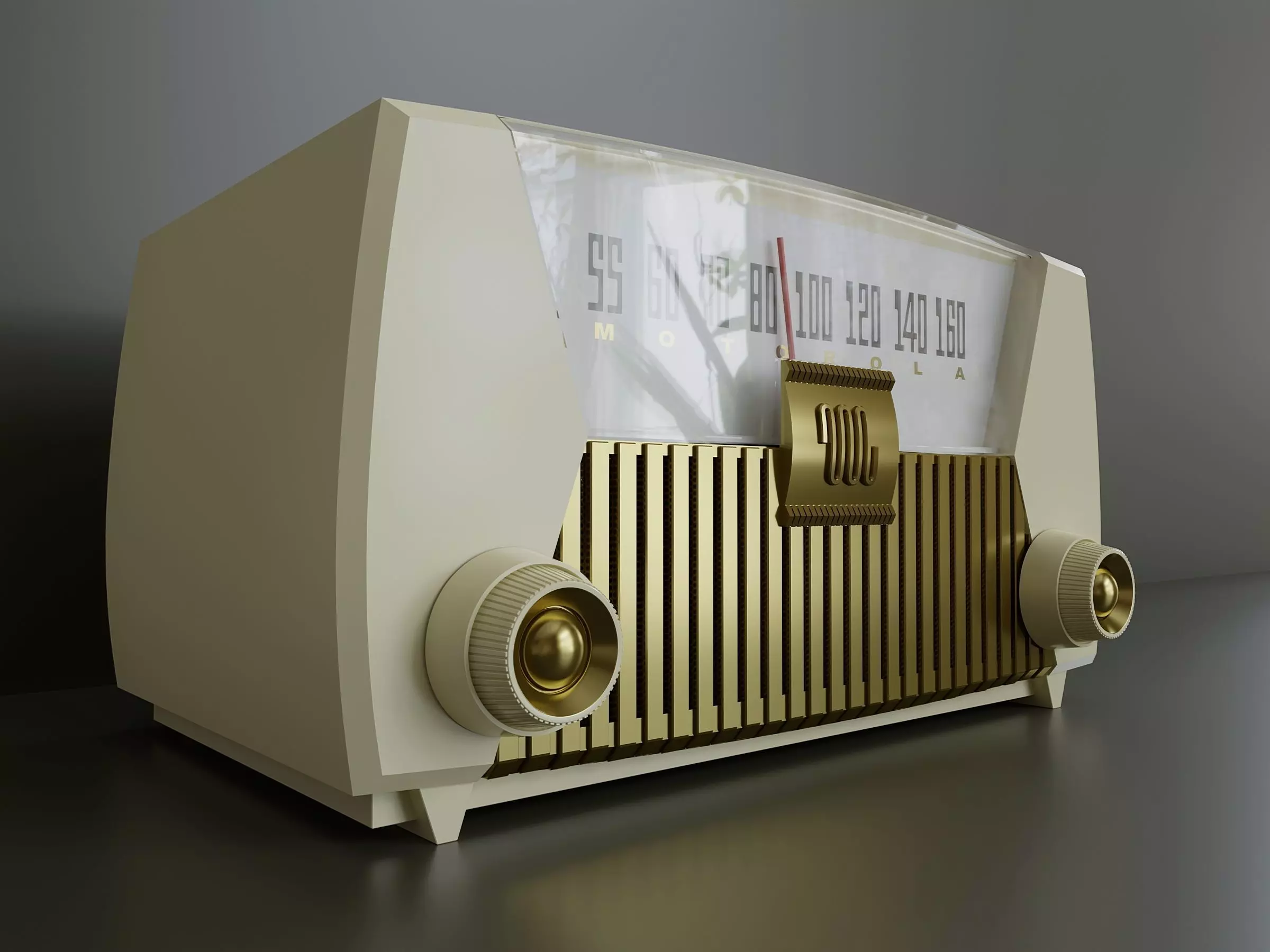 1954 Motorola 62X Dashboard Atomic AM Tube Radio MCM Vintage White.All details of the model are combined into one object. All materials are native blender. The texture of the decoille metal grid is packed in the ZIP archive.