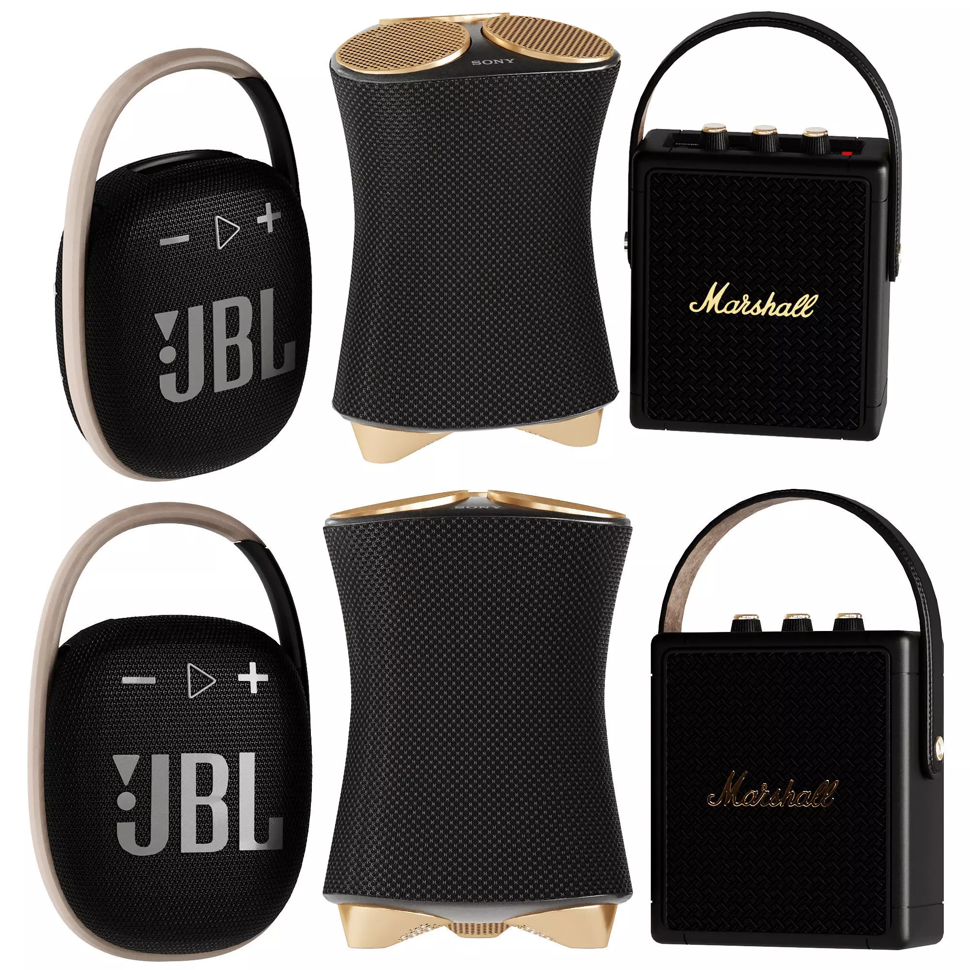 Wifi Speaker SetSony SRS-RA5000 360 Reality Audio Premium Wi-FiJBL Clip 4 Portable Bluetooth Wireless SpeakerMarshall Stockwell II PortableVray And CoronaFbx And ObjMax Version is 2015Textures Are 4K