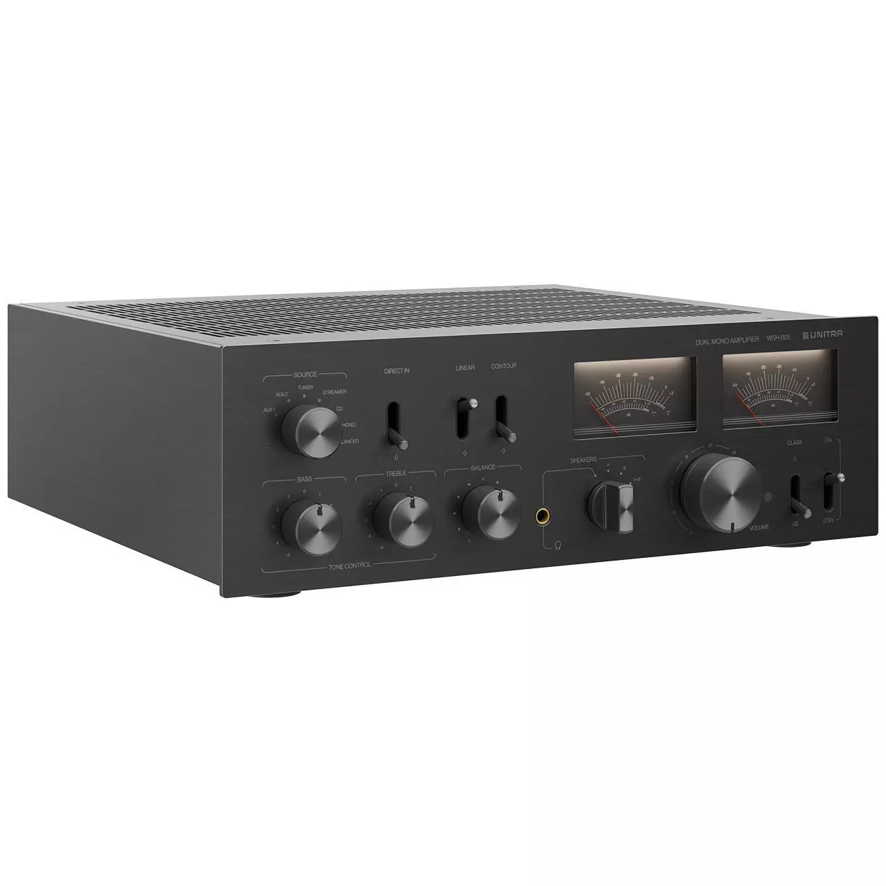 3d model WSH 805 Integrated Stereo Amplifier Black by Unitra and launched in 2023. The WSH 805 Integrated Stereo Amplifier by Unitra is a striking fusion of 1970s-inspired design and modern engineering, making it a standout piece in any interior. Its robust 22 kg chassis, adorned with pivot-style swing-out indicators and bistable switches, adds a touch of vintage elegance to contemporary spaces. Beyond its aesthetic appeal, the amplifier offers exceptional audio performance with its dual-mono architecture and current feedback topology, ensuring pristine sound quality. Recognized with the Red Dot Design Award in 2023, the WSH 805 seamlessly integrates high-fidelity sound with timeless design, enhancing both the auditory and visual ambiance of your living space. Dimensions of the amplifier: H 14.3 x L 44 x D 38.5 cm / H 5.63 x L 17.32 x D 15.16 inches. The Vray, Corona, and Blender files come with materials in place, ready to render.