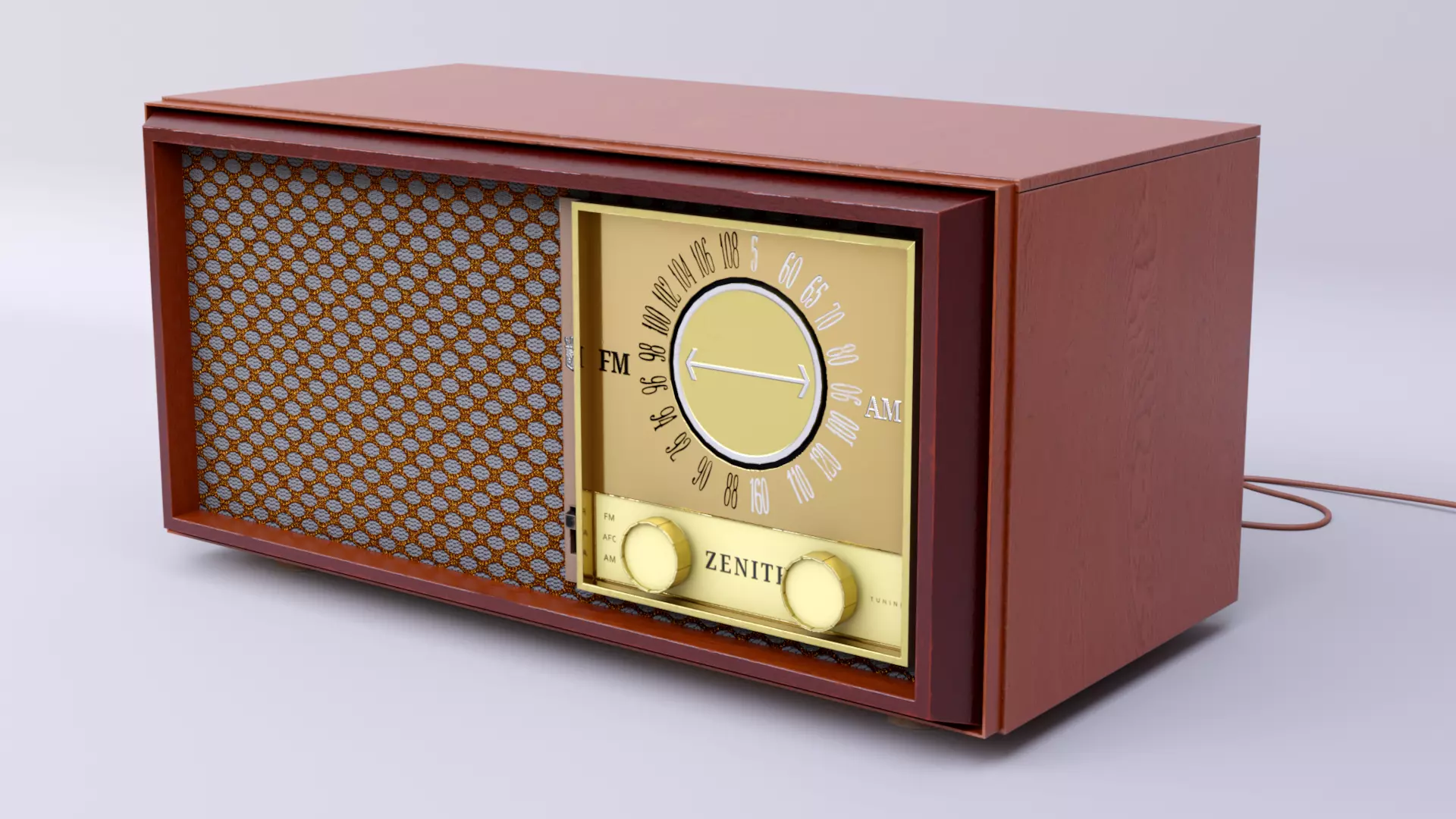 This asset captures the essence of the original Zenith radio, complete with its distinctive mesh speaker grille, golden tuning dial, signature brand markings, wooden cabinet construction, and even the underside service label and back-panel warning details. Everything has been modeled and textured with accuracy and care to ensure it looks great in any rendering engine or game environment.