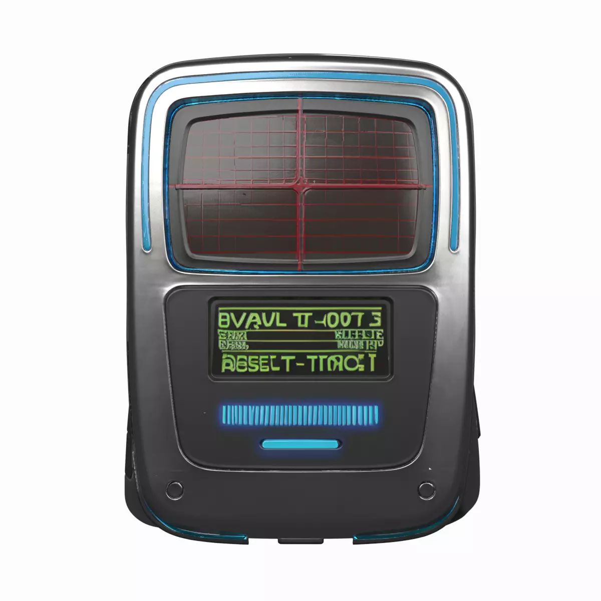 Professional-grade bank vault inventory scanner featuring a sleek ergonomic design with a sturdy handheld grip for comfortable operation during long inventory sessions. The device includes a high-resolution LED display screen showing asset information and tracking data, an integrated barcode reader with precision scanning optics for fast inventory management, and a flexible USB cable for seamless data transfer to banking systems. The scanner showcases detailed industrial construction with visible LED indicator lights, ergonomic trigger buttons, and cable port connections. This sophisticated piece of banking technology is rendered from four perspectives: front view showing the scanning window and display screen, back view revealing the grip and cable port, left side highlighting the device profile and trigger button,