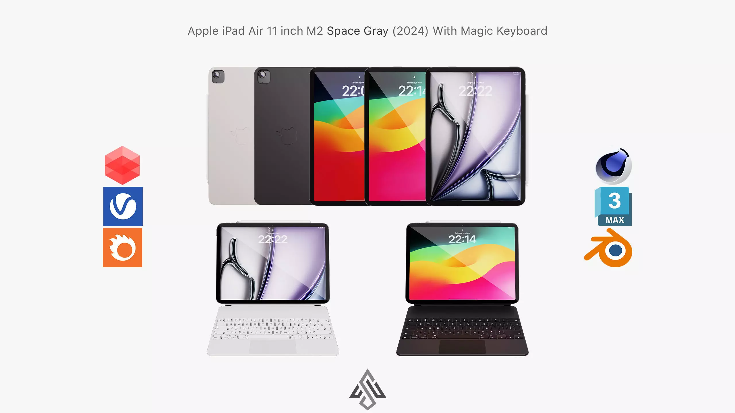 This 3D model is based on dimensions of “ Apple iPad Air 11 inch Space Gray & Magic Keyboard for iPad Air M2 & Apple Pencil Pro”.